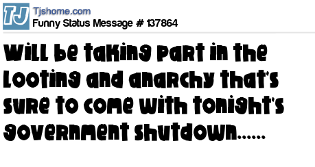 X says Will be taking part in the looting and anarchy that's sure to come with tonight's government shutdown......