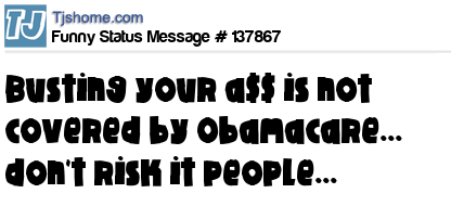 X says Busting your a$$ is not covered by Obamacare... don't risk it people...