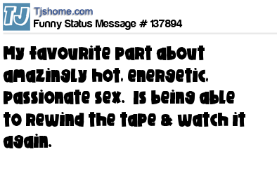 X says My favourite part about amazingly hot, energetic, passionate sex. Is being able to rewind the tape & watch it again.