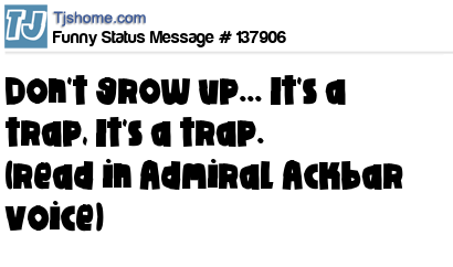 X  Don't grow up... It's a trap, It's a trap.  (read in Admiral Ackbar voice)
