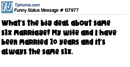 X says What's the big deal about same s3x marriage? My wife and I have been married 20 years and it's always the same s3x.