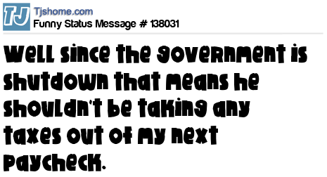X says Well since the government is shutdown that means he shouldn't be taking any taxes out of my next paycheck.