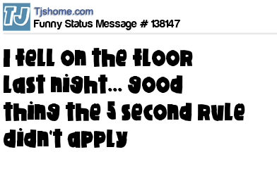 - # 112604 If my girlfriend falls on the floor, does the 3 second rule still apply?