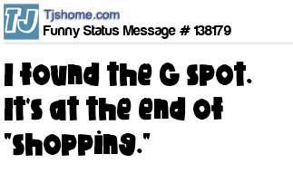 - # 88200 For those who know nothing of how to satisfy a woman: The G spot is located at the end of the word shopping.
