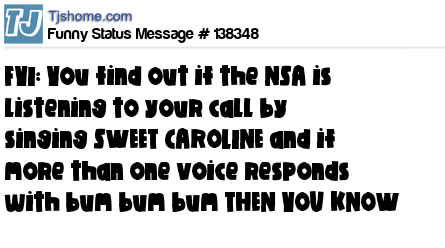 X FYI: You find out if the NSA is listening to your call by singing SWEET CAROLINE and if more than one voice responds with bum bum bum THEN YOU KNOW