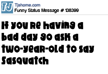 X says If you’re having a bad day go ask a two-year-old to say Sasquatch
