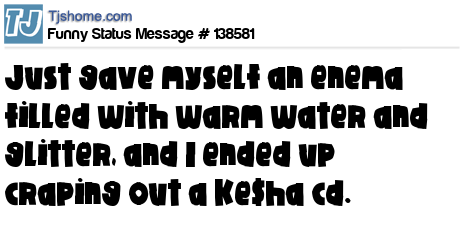X Just gave myself an enema filled with warm water and glitter, and I ended up craping out a Ke$ha cd.