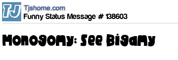 - # 17229 Bigamy is having one wife too many. Monogamy is the same