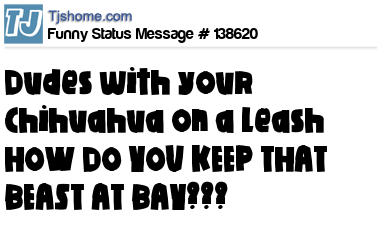 X says Dudes with your Chihuahua on a leash HOW DO YOU KEEP THAT BEAST AT BAY???