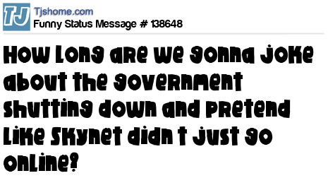 X  How long are we gonna joke about the government shutting down and pretend like Skynet didn’t just go online?