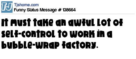 X says It must take an awful lot of self-control to work in a bubble-wrap factory.