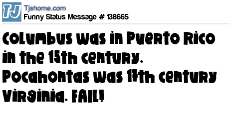 X says Columbus was in Puerto Rico in the 15th century. Pocahontas was 17th century Virginia. FAIL!