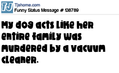 X says My dog acts like her entire family was murdered by a vacuum cleaner.