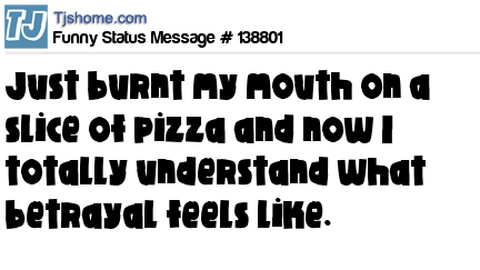 X says Just burnt my mouth on a slice of pizza and now I totally understand what betrayal feels like.