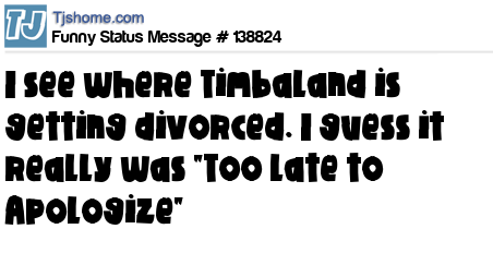 X says I see where Timbaland is getting divorced. I guess it really was "Too late to Apologize"