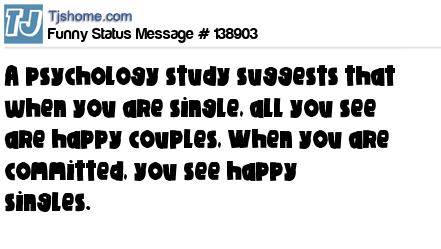 - # 24605 When you are SINGLE all you see are happy couples.... When you are COMMITTED all you see are happy SINGLES!!! ;-)