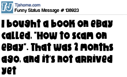 X says I bought a book on eBay called, "How to scam on eBay". That was 2 months ago, and it's not arrived yet