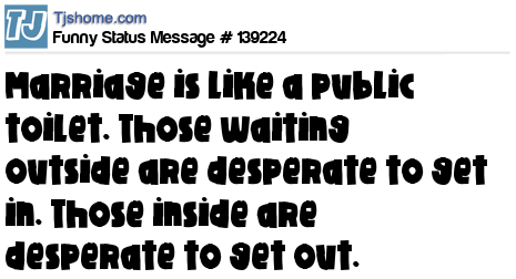 X says Marriage is like a public toilet. Those waiting outside are desperate to get in. Those inside are desperate to get out.