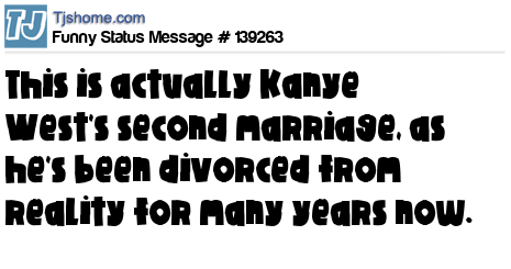 X says This is actually Kanye West's second marriage, as he's been divorced from reality for many years now.