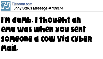 X  I'm dumb. I thought an emu was when you sent someone a cow via cyber mail.