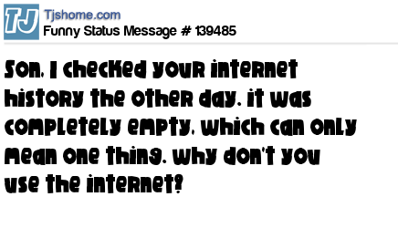 X says son, I checked your internet history the other day. it was completely empty, which can only mean one thing. why don't you use the internet?
