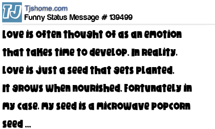 X Love is often thought of as an emotion that takes time to develop. In reality, love is just a seed that gets planted. It grows when nourished. Fortunately in my case, my seed is a microwave popcorn seed ...