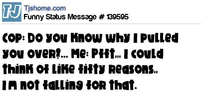 X Cop: Do you know why I pulled you over?... Me: Pfft,,, I could think of like fifty reasons,, I’m not falling for that.