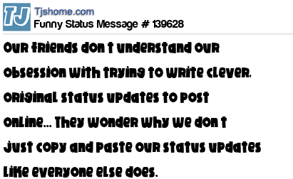 X Our friends don’t understand our obsession with trying to write clever, original status updates to post online... They wonder why we don’t just copy and paste our status updates like everyone else does.