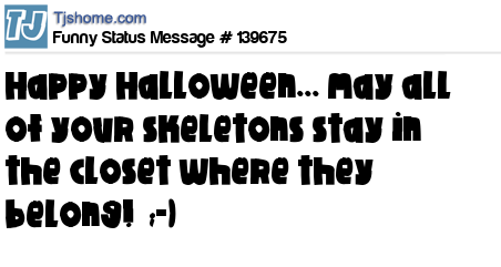 X says Happy Halloween... may all of your skeletons stay in the closet where they belong! ;-)