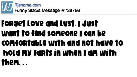 X says Forget love and lust, I just want to find someone I can be comfortable with and not have to  hold my farts in when I am with them. . .