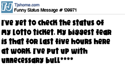 X I've yet to check the status of my Lotto ticket. My biggest fear is that for last five hours here at work, I've put up with unnecessary bull****
