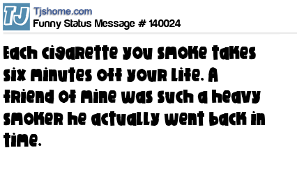 X says Each cigarette you smoke takes six minutes off your life. A friend of mine was such a heavy smoker he actually went back in time.