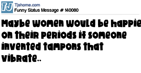 - # 39375 thinking if somebody invented vibrating tampons women would enjoy their period a lot more!!