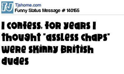 X says I confess, for years I thought "assless chaps" were skinny British dudes