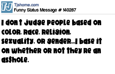X says I don’t judge people based on color, race, religion, sexuality, or gender…I base it on whether or not they’re an as$hole.