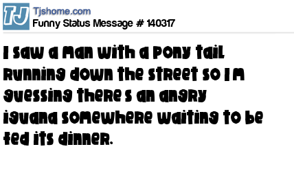 X says I saw a man with a pony tail running down the street so I’m guessing there’s an angry iguana somewhere waiting to be fed its dinner.