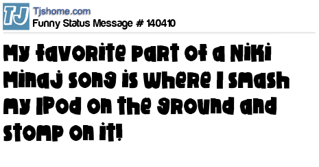 X says My favorite part of a Niki Minaj song is where I smash my IPod on the ground and stomp on it!