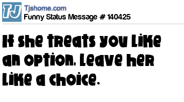 - # 68158 If your girl gives you a "choice" preceded by an option, the option is really your only choice.