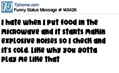 - # 134671 I hate when I put food in the microwave & it starts makin explosive noises so I check and it’s cold like why you gotta play me like that.