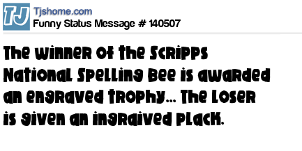 X The winner of the Scripps National Spelling Bee is awarded an engraved trophy... The loser is given an ingraived plack.