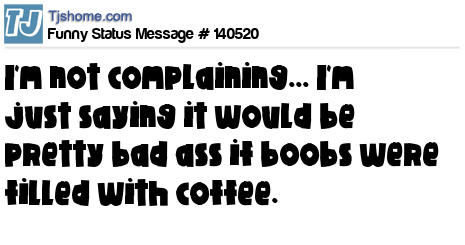 X says I'm not complaining... I'm just saying it would be pretty bad ass if boobs were filled with coffee.