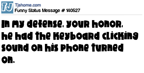 X says In my defense, your honor, he had the keyboard clicking sound on his phone turned on.