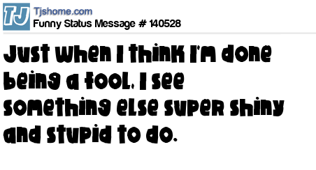X says Just when I think I'm done being a fool, I see something else super shiny and stupid to do.