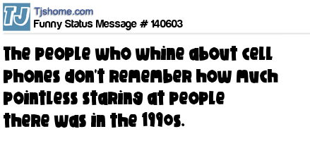 X says The people who whine about cell phones don't remember how much pointless staring at people there was in the 1990s.