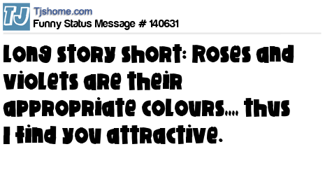 X Long story short: Roses and violets are their appropriate colours,,,, thus I find you attractive.