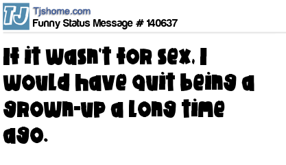 X says If it wasn't for sex, I would have quit being a grown-up a long time ago.
