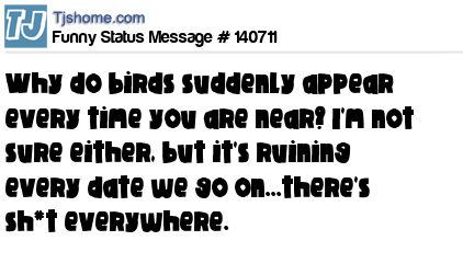 X says Why do birds suddenly appear every time you are near? I'm not sure either, but it's ruining every date we go on...there's sh*t everywhere.