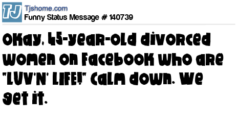X says Okay, 45-year-old divorced women on Facebook who are "LUV'N' LIFE!" Calm down. We get it.