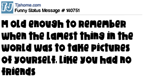 X says m old enough to remember when the lamest thing in the world was to take pictures of yourself, like you had no friends