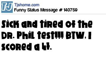 X says Sick and tired of the Dr. Phil test!!! BTW, I scored a 47.